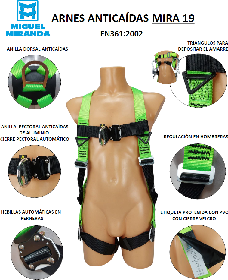 - Arnés textil con 10 puntos de anclaje.